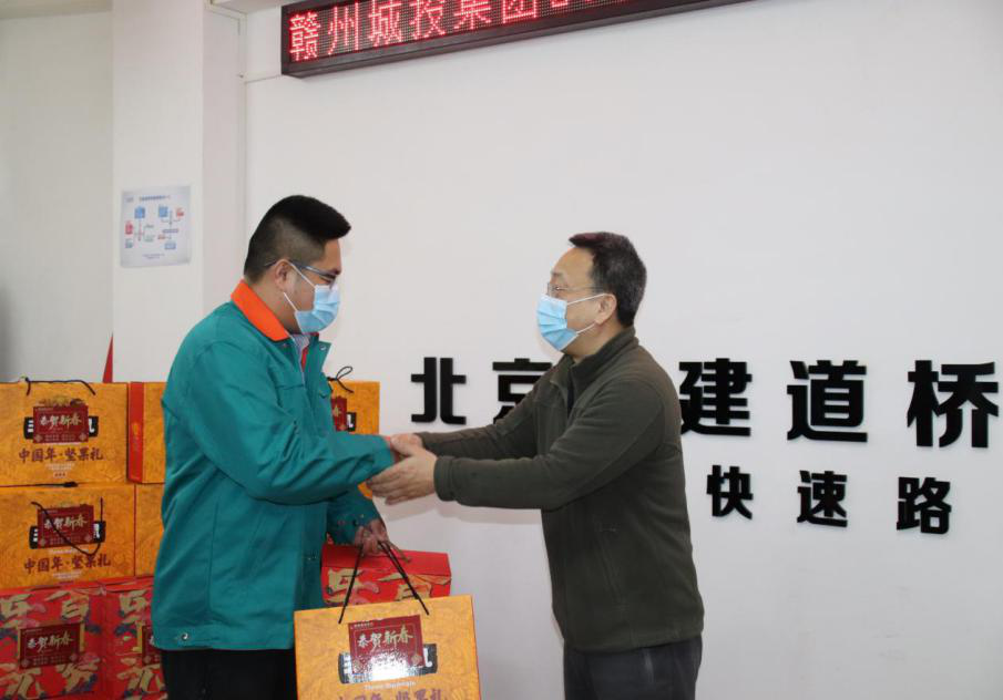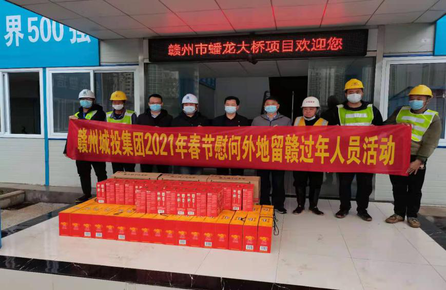 2月9日,贛州城投集團開展2021年春節(jié)慰問市域外留贛州過年人員活動,為留在贛州過年的市域外集團員工及項目工人送上年貨禮包,讓他們就地過好溫馨春節(jié)。