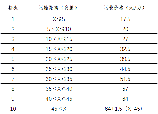 注:河砂價(jià)格不變,到砂價(jià)為河砂價(jià)格+運(yùn)費(fèi)價(jià)格。