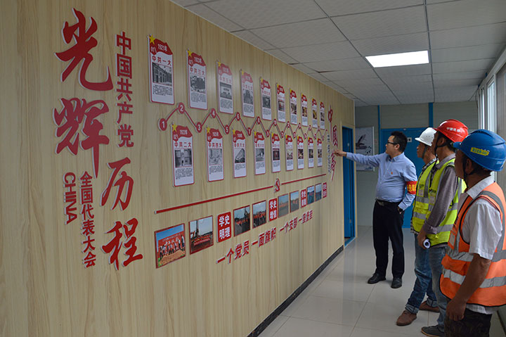 在贛州市蟠龍大橋項(xiàng)目部的黨員活動(dòng)室走廊,贛州城投集團(tuán)工程管理公司黨總支設(shè)置了一面黨史學(xué)習(xí)墻,記錄黨從1921年中共一大到十九大的偉大光輝歷程。在該項(xiàng)目部,贛州城投集團(tuán)黨員帶著項(xiàng)目其他人員,定期到黨史學(xué)習(xí)墻前開展“黨史接龍”學(xué)習(xí),重溫歷史,傳承優(yōu)良的革命傳統(tǒng)。
