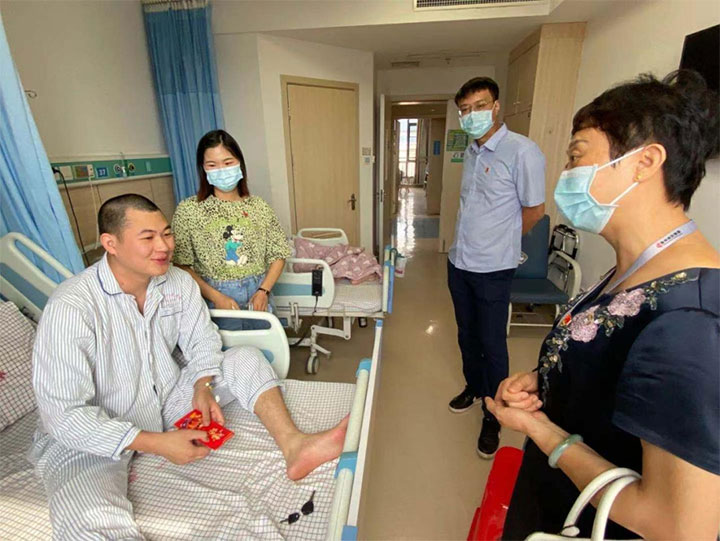 前不久,贛州城投集團新型建材公司黨支部在摸排“我為群眾辦實事”線索過程中,得知一名職工丈夫生病住院做手術(shù),病情讓她很是牽掛。8月12日上午,新型建材公司黨支部組成慰問小組,來到贛州市人民醫(yī)院,看望該名職工及其丈夫,為他們送去了黨支部的關(guān)心和慰問。